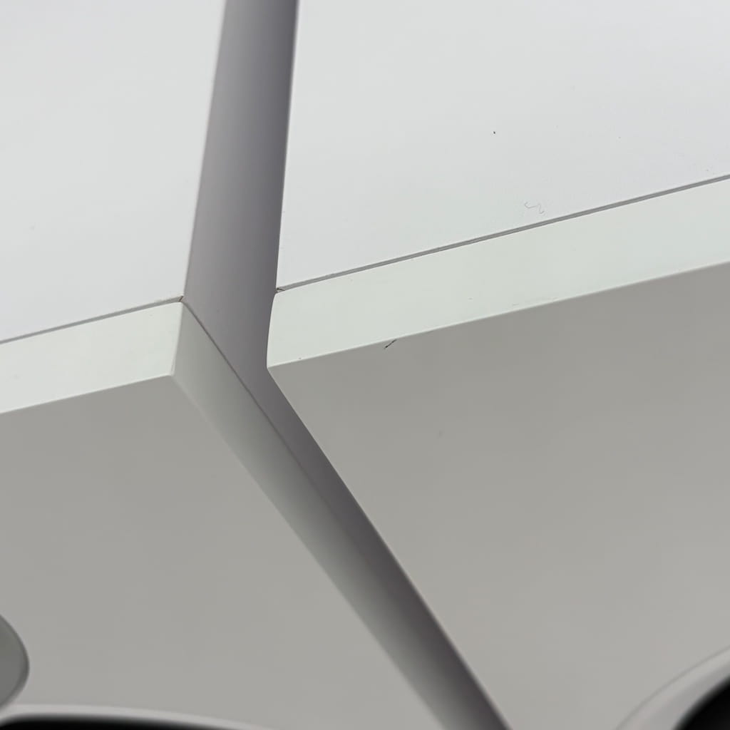These speakers are in very good condition. There is a small mark at the top corner of one, as pictured.