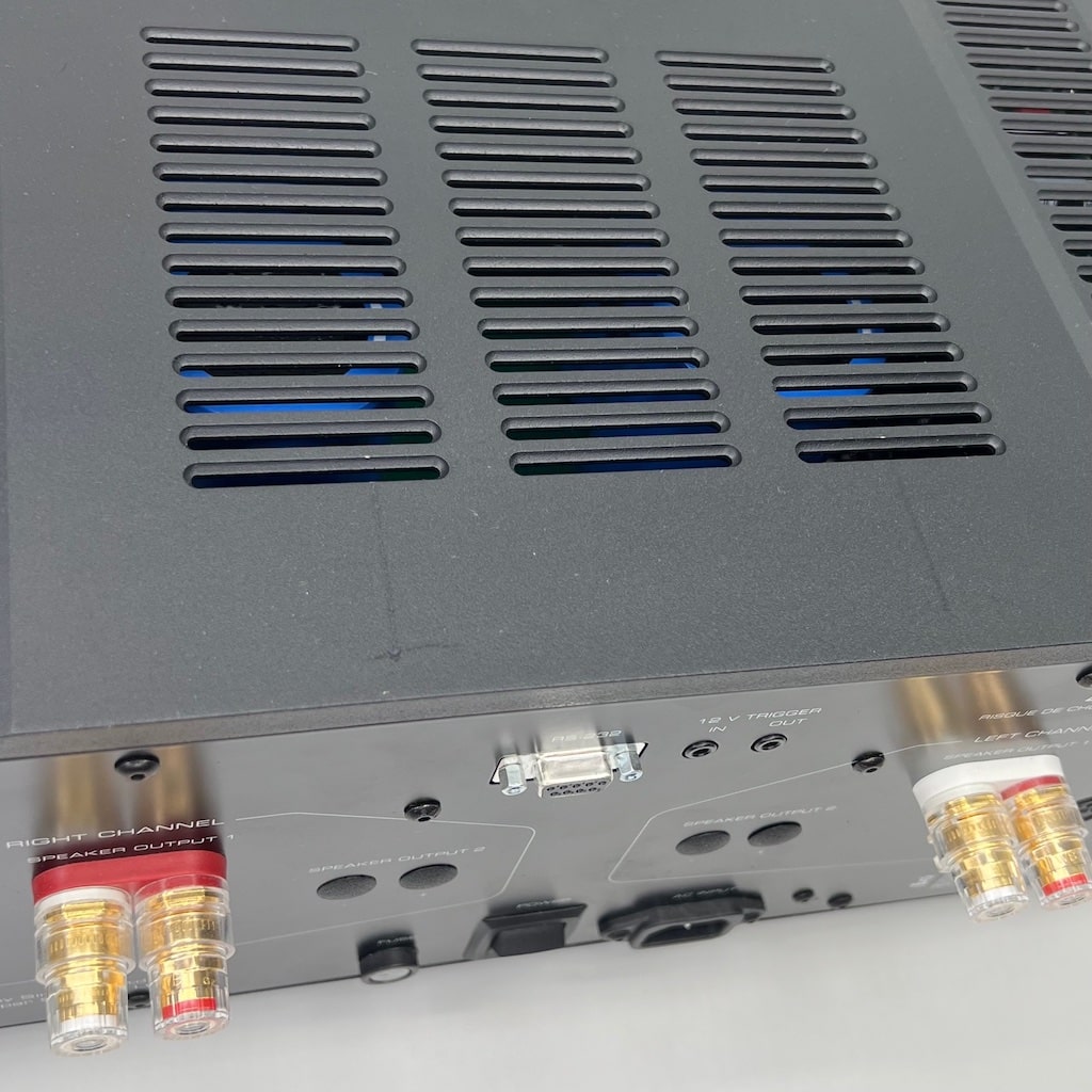 This is a 1st generation 860A Stereo Power Amplifier. It is in good condition but does have a two marks on the top of the casework right at the back (as seen in the picture). The unit is complete with its original box and all accessories.